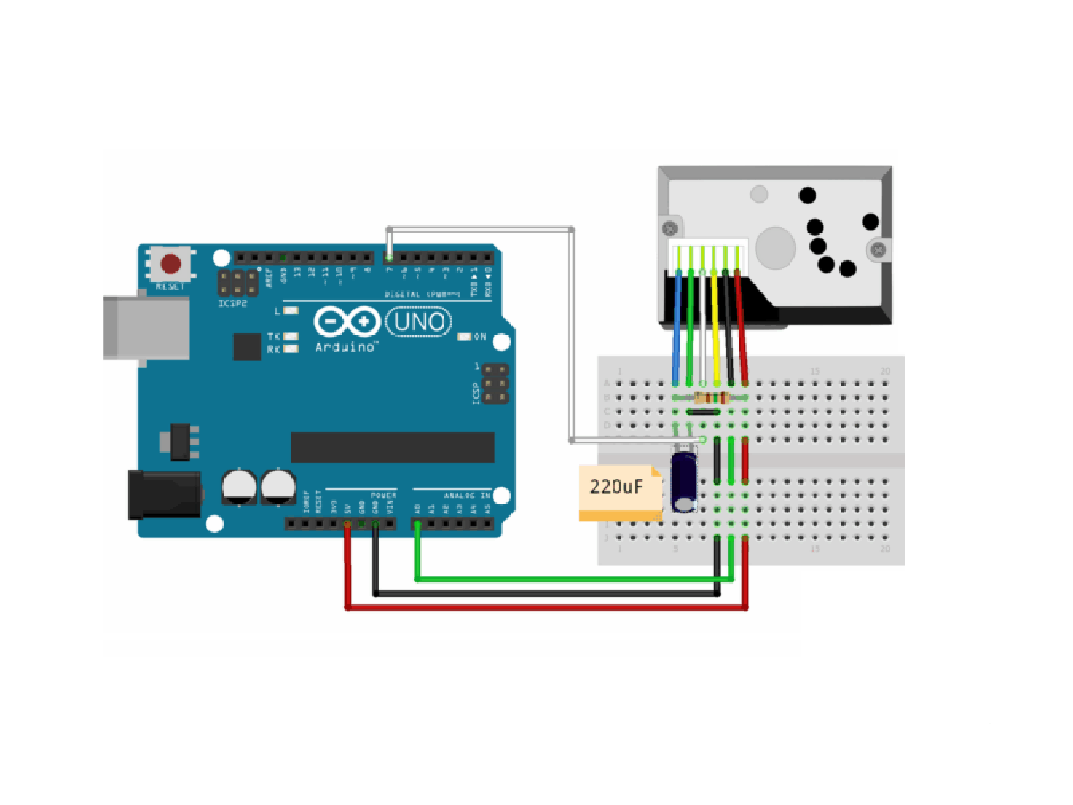 Arduino GP2Y1014AU0F Dust Sensor Circuit Connection Diagram