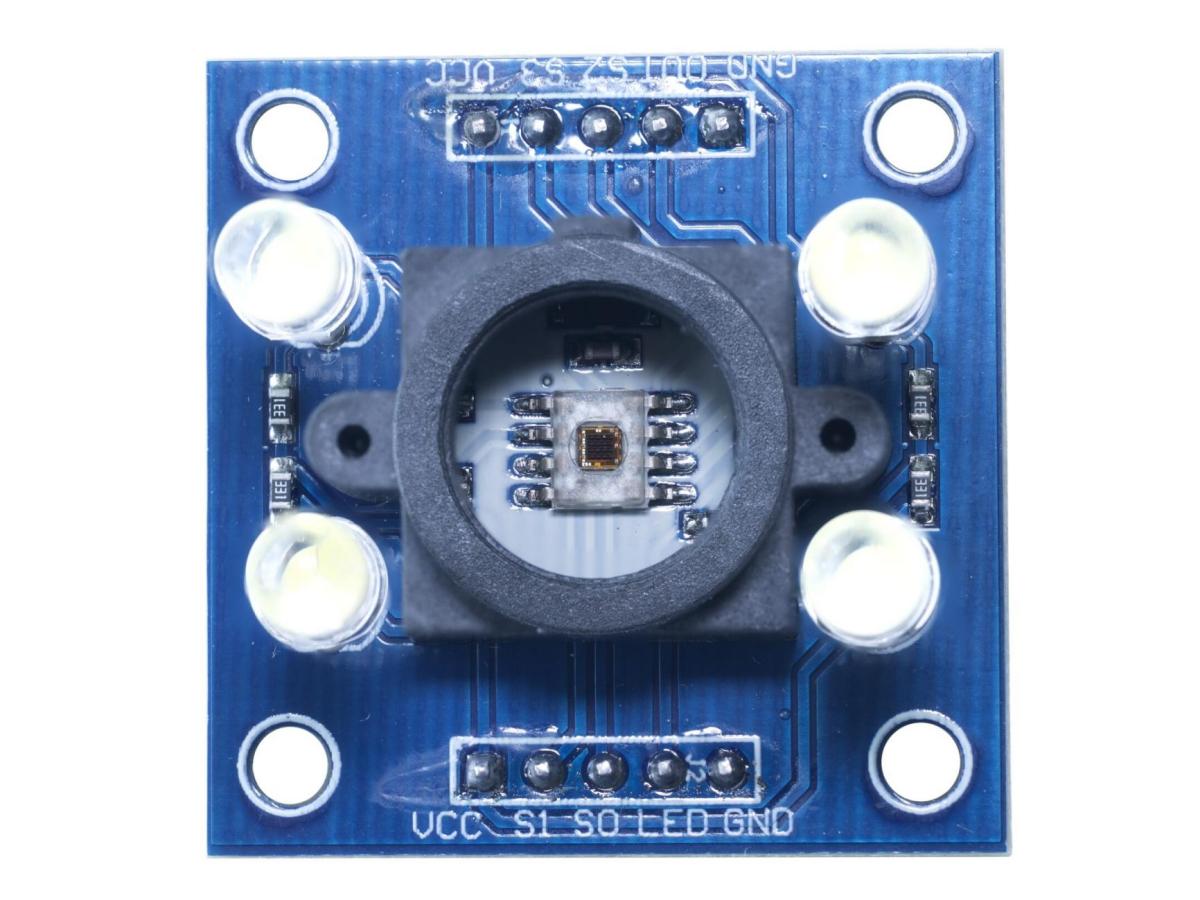 It integrates a 16-bit analog-to-digital converter inside, capable of sensing red, green, and blue colors, and can also synthesize more rich color information through algorithms. In simple terms, it can “see” the color of an object and convert the color information into data that we can read.