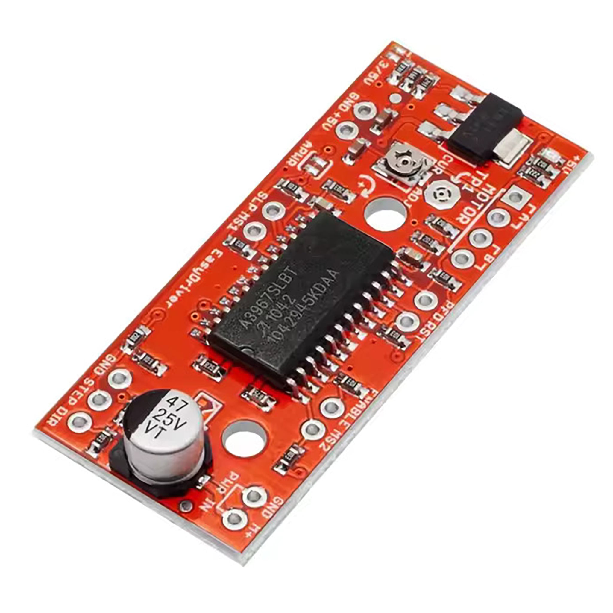 The A3967 is a simple two-phase, four-wire stepper motor driver board designed specifically for beginners, making it ideal for learning and working with stepper motors.