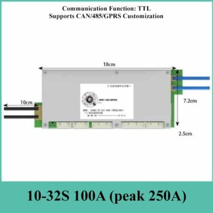 The 80A、100A、120A intelligent BMS equipped with a comprehensive range of functions. These functions include cell voltage detection, temperature detection, and high-voltage detection for real-time monitoring of battery status; battery balancing to ensure consistent performance across battery cells; customizable communication interfaces supporting CAN (Controller Area Network), 485, and TTL (Transistor-Transistor Logic) protocols to adapt to diverse application scenarios; GPRS and Bluetooth connectivity (with mobile APP compatibility) for remote data transmission and user interaction; sleep-wake-up control and delayed power-off features for energy conservation and operational safety; State of Charge (SOC) estimation to accurately assess remaining battery capacity; and MOSFET control for precise regulation of battery charging, discharging, and overall operation.