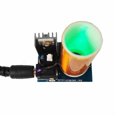 This Tesla coil module can be used for magic shows (like “airborne lighting”), arc-based ignition, or as a decorative piece (placed near displays for viewing). It supports multiple functions.