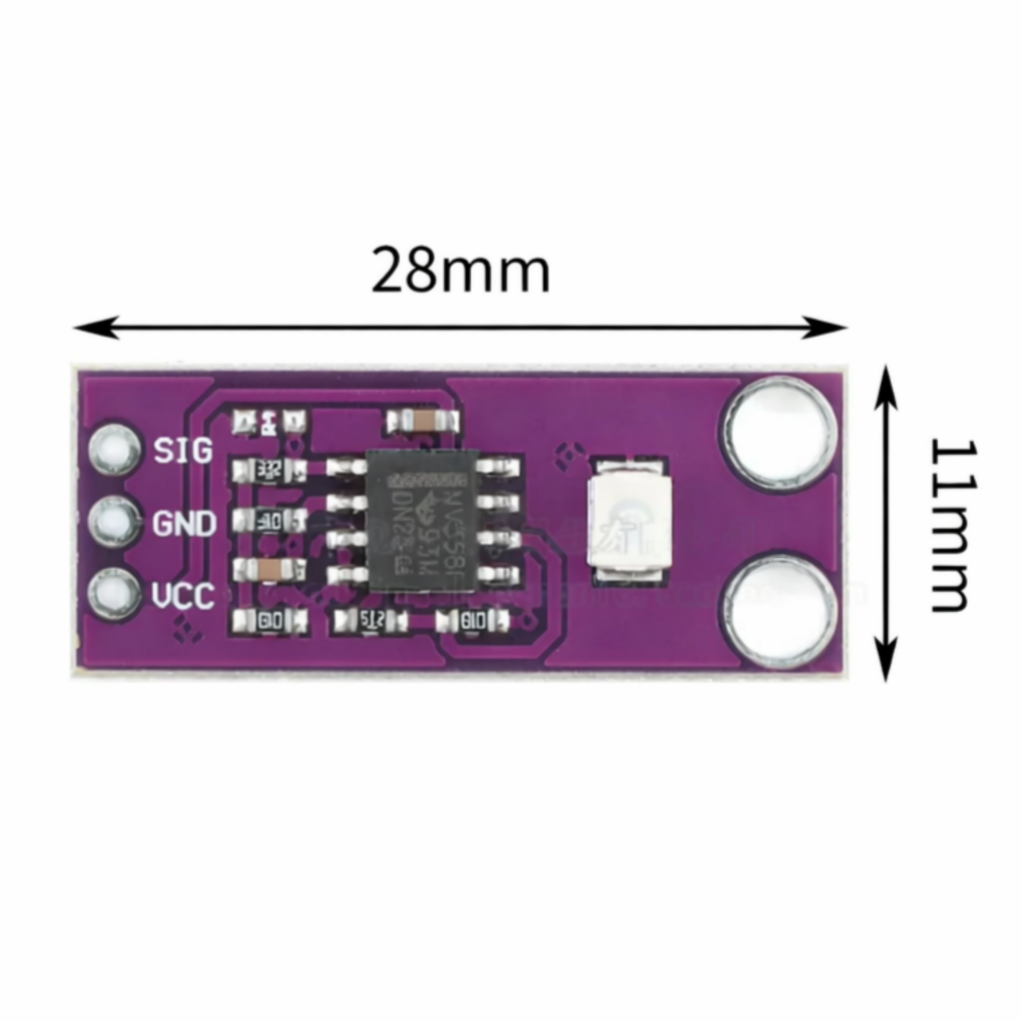 This UV detection module uses a Schottky photodiode made of aluminum nitride material, featuring high responsivity and low dark current. A built-in LMV358 amplifier amplifies the weak signal output by the photodiode, and all components are manufactured with 1% precision. It is applied in UV testers, UV watches, outdoor sports devices, mobile phones, etc.