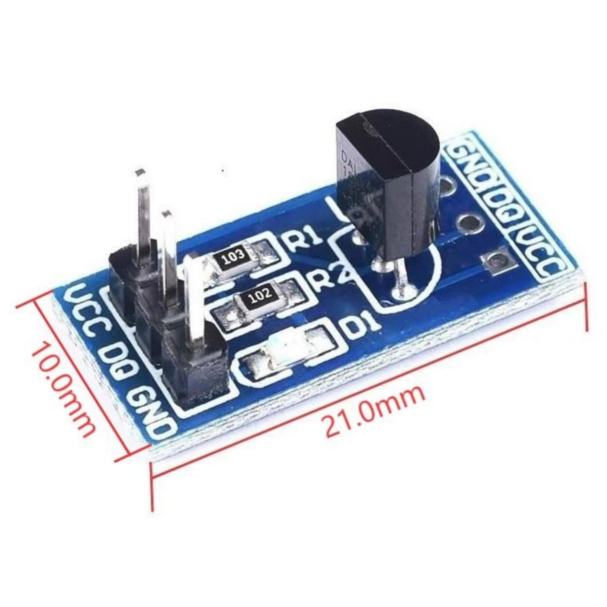 DS18B20 is a digital temperature sensor widely used for temperature measurement. It communicates with the microcontroller through 1-Wire interface and provides temperature readings. This sensor features a small size, low hardware cost, strong anti-interference ability and high accuracy.