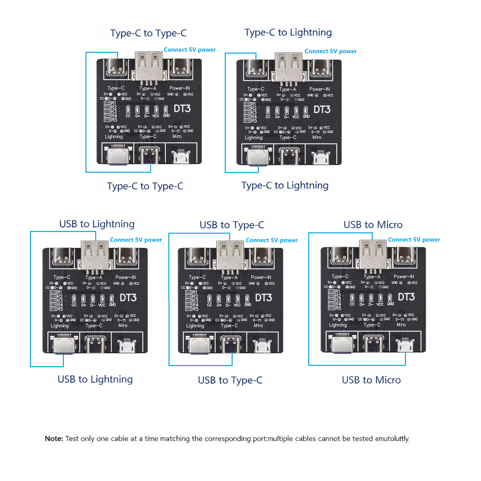 - Fast Detection Speed: Quickly detect abnormal cable with the DT3 for Micro-type Type-C port, ensuring the stability and safety of your USB cables.