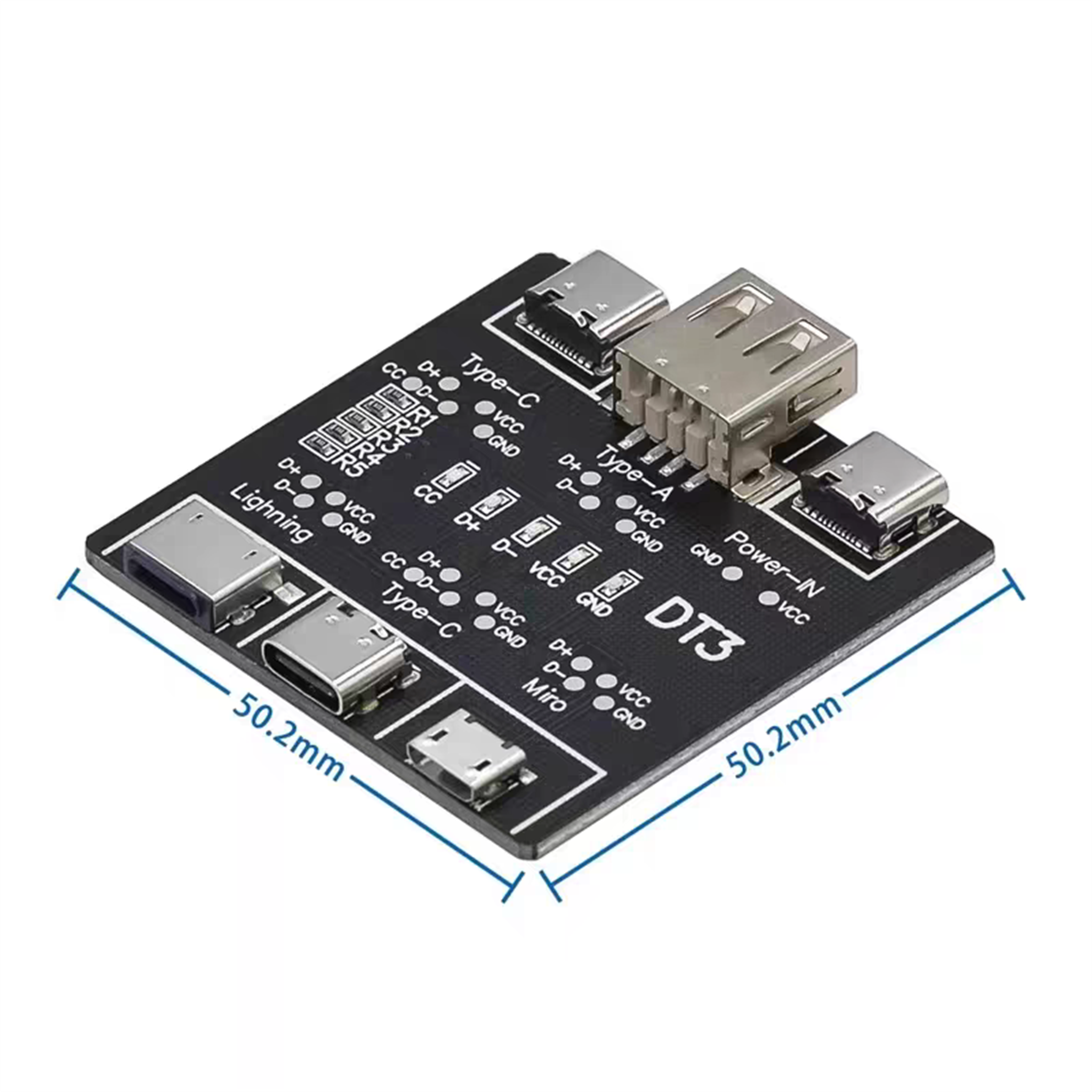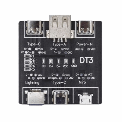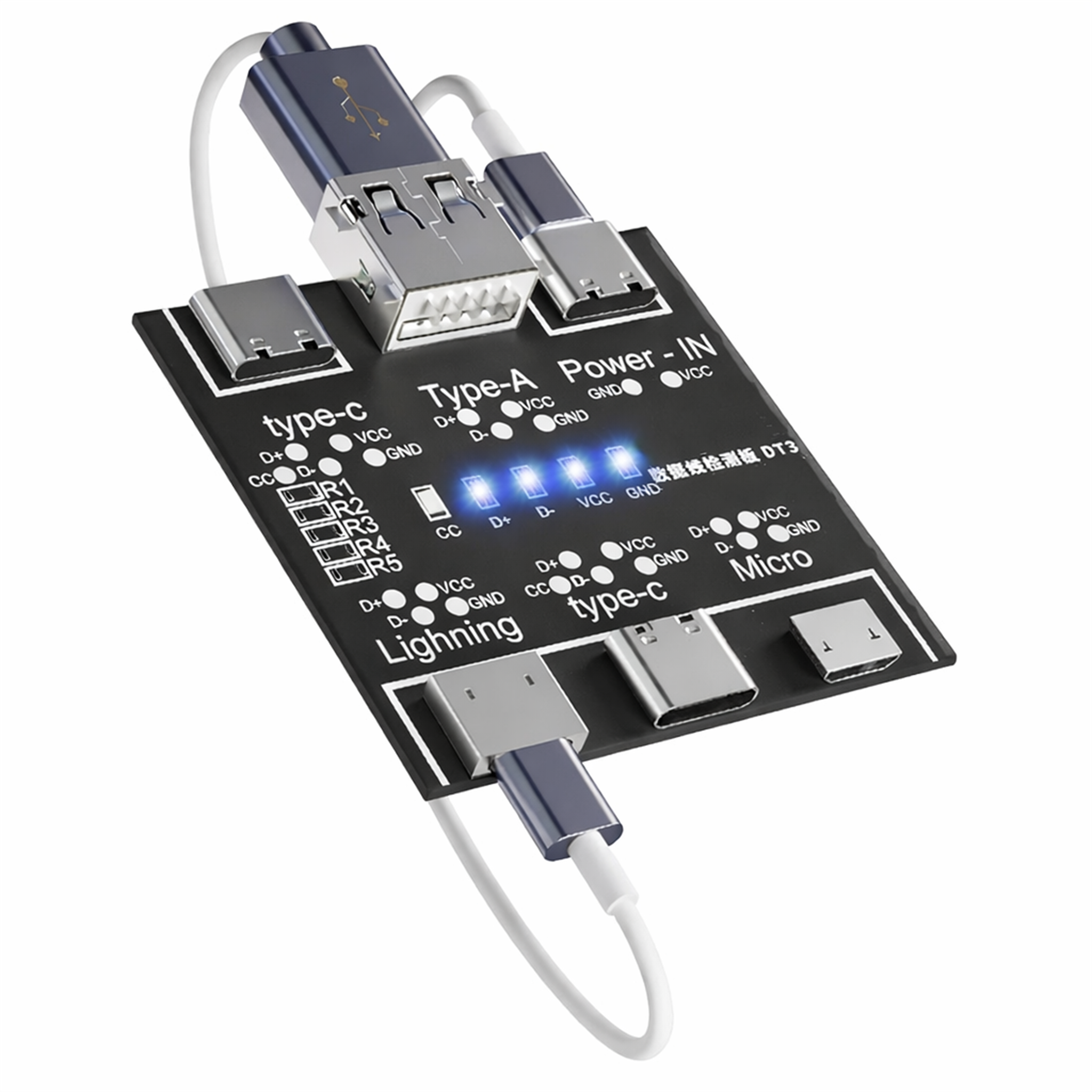The DT3 USB Data Cable Detection Module is used to test whether a USB cable supports power delivery, data transmission, and proper internal wiring. It helps identify faulty, charge-only, or non-standard cables quickly using LED indicators.