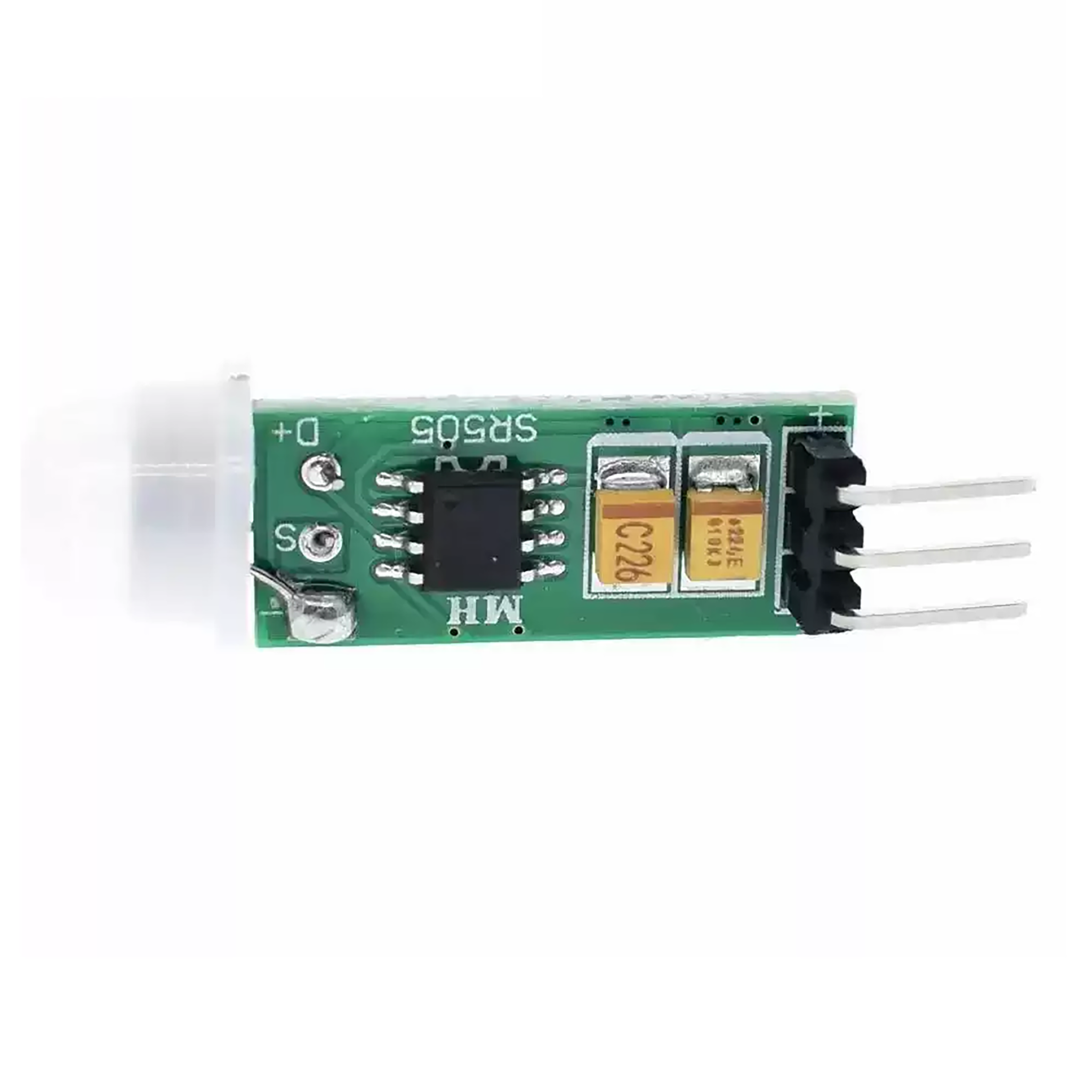 As a miniature PIR infrared sensor, the HC-SR505, with its compact size, is suitable for compact devices. It features a wide voltage supply range of 4.5-20V, low static power consumption, and a detection distance of 1-3 meters, with selectable triggering modes via adjustment. It can capture moving heat sources and often serves as the core of induction triggering for human bodies or heat-generating objects in smart home widgets, portable sensing devices, and miniature automated devices.