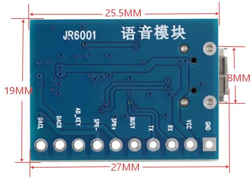 JR6001 is a high-performance voice module,mainly used in embedded systems to implement voice playback function.This module supports multiple storage media,including USB flash drivers,SD cards(TF cards) and internal Flash storage.It also features flexible playback control settings,and can receive commands via serial interface to perform operations such as playback,pause and skip of voice files.