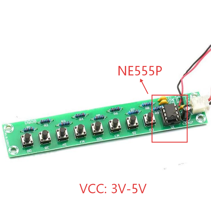 The frequency selection is realized by tapping the keys of S1-S8. Operate the corresponding button to make the speaker emit eight different notes.