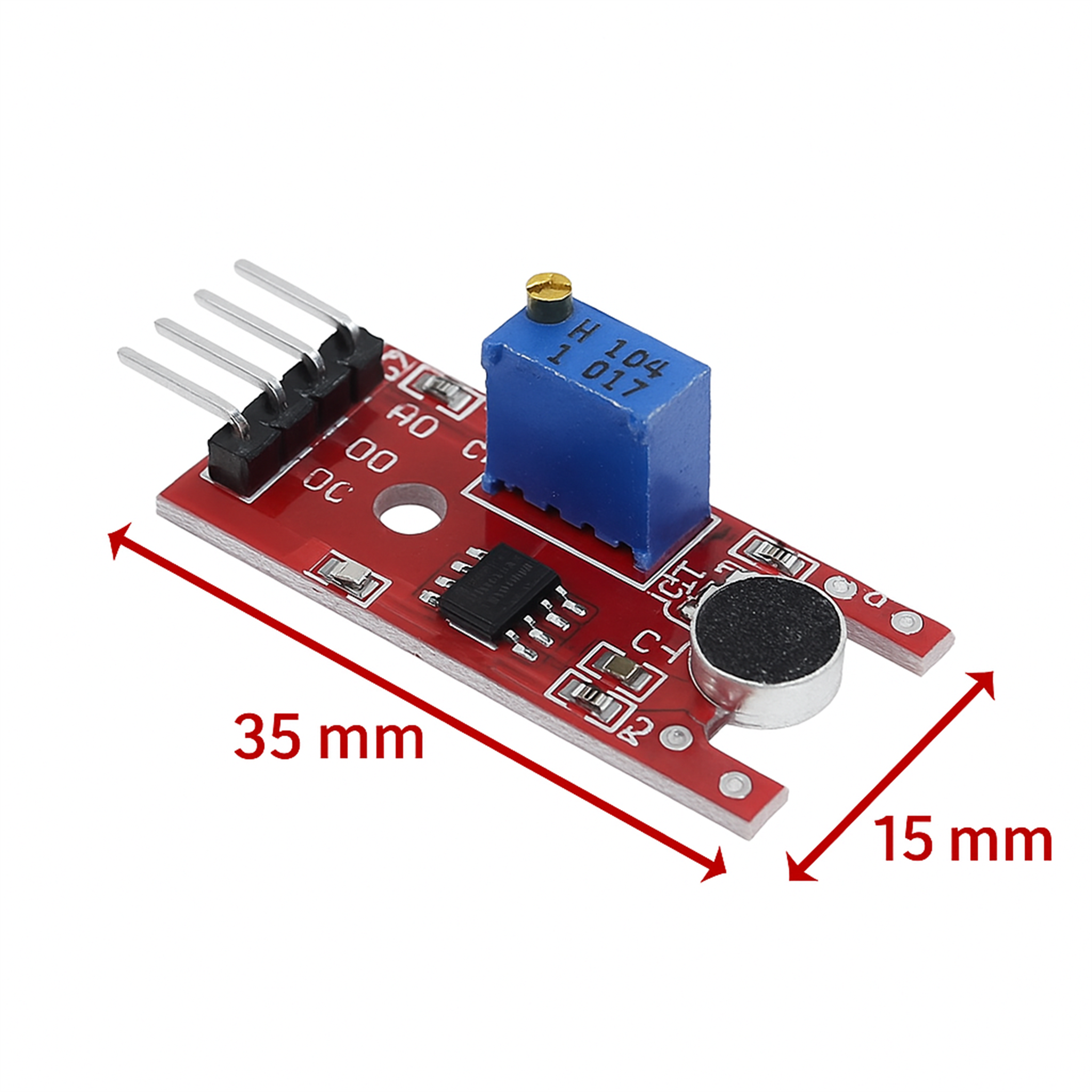 The KY-038 is a simple sound sensor module that detects ambient noise levels and provides both analog and digital outputs for easy integration with microcontroller projects.
