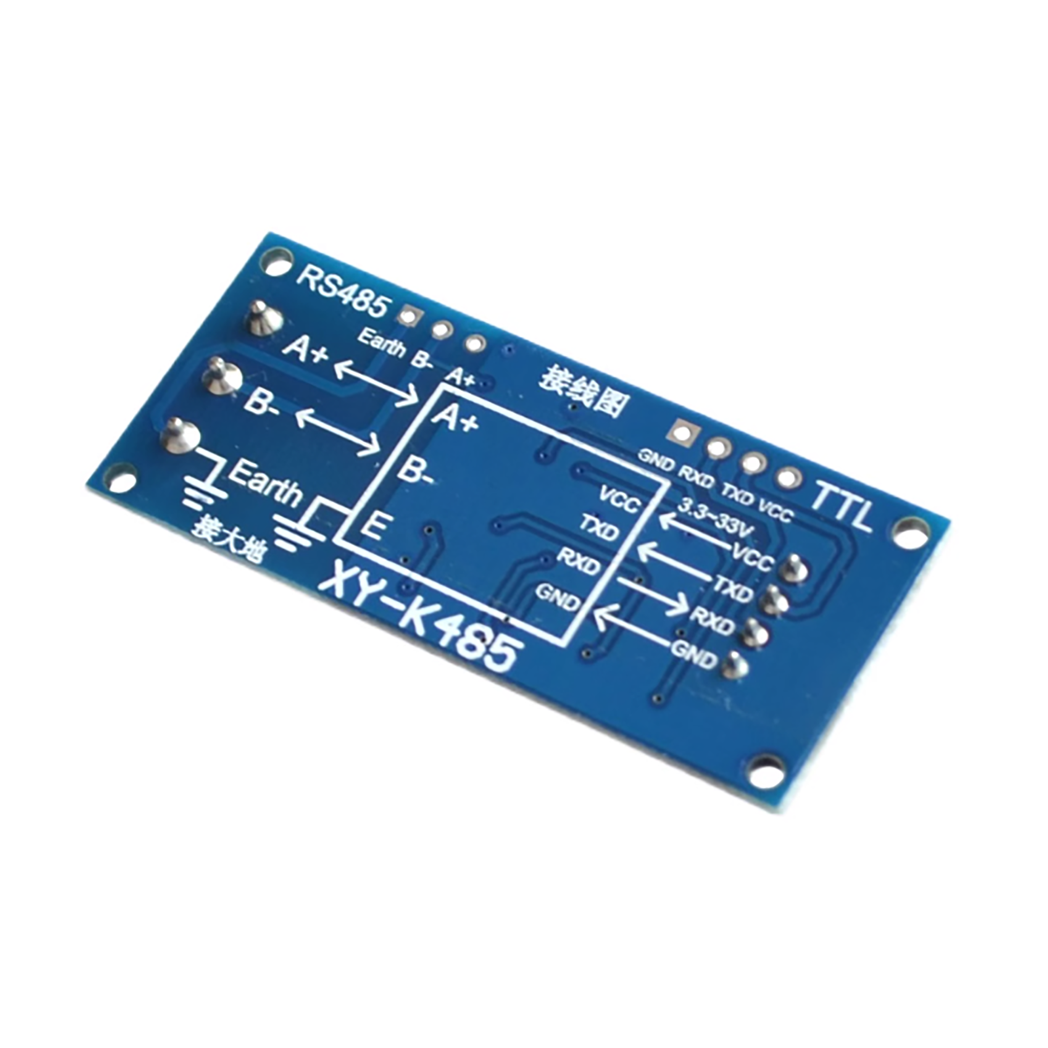 The TTL to RS485 module with hardware automatic flow control and terminal blocks converts TTL-level signals into RS485 differential signals without manual direction control. It features stable communication and convenient wiring, making it suitable for industrial control and embedded communication applications.