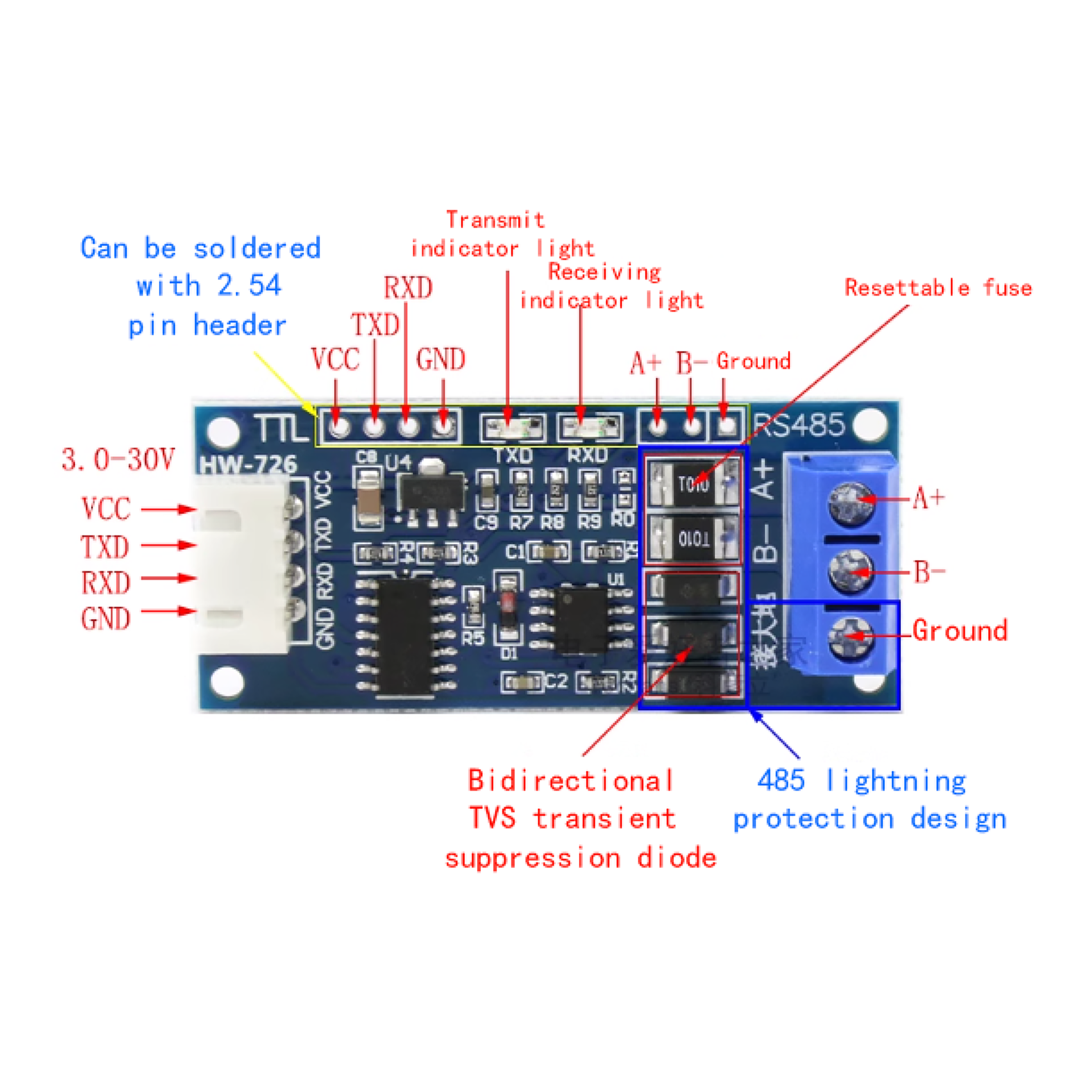 TTL to RS485 Module with Hardware Automatic Flow Control and Terminal Blocks