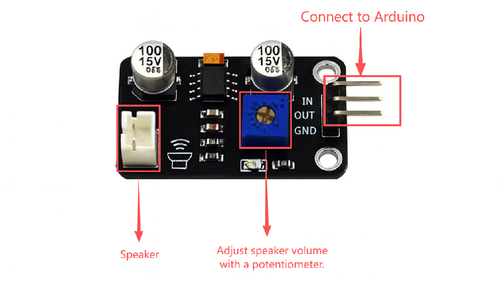 You can fine-tune the output volume through the potentiometer (because of space constraints, can not use the index potentiometer, the volume can only be adjusted in a small range), With Arduino Tone function, you can easily play music, It can also be used for audio equipment external active amplifier, The speaker fixed in the box, the sound quality is better, Suitable for Arduino play music, a variety of audio equipment, such as external power amplifier