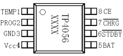 | TEMP (Pin 1) | Temperature Sense Input. Connecting TEMP pin to NTC thermistor’s output pin (Lithium ion battery pack). If TEMP pin’s voltage is BELOW 45% or above 80% of supply voltage, this means that battery’s temperature is too high or too low, charging is suspended. The temperature sense function can be disabled by grounding the TEMP pin. |